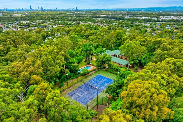 On the main level, the kitchen and sprawling living areas are encased by glass louvered and large windows which showcase the amazing views of the Gold Coast. Enjoy the luxury of sitting watching the fantastic city seascape and sparkling lights at night whilst sitting in front of your log burning sandstone fluted fireplace. The huge master suite offers dressing room and en-suite. Main bathroom also accommodates fifth bedroom. A huge laundry provides plentiful storage, well planned design leads you out to a private drying courtyard which is surrounded by lush manicured gardens. Cleverly designed to open its doors to multiple option.