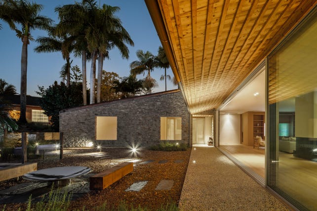 Wellness is woven throughout the design. A timber-clad pavilion with yoga deck and ice bath invites deep restoration, while a firepit lounge framed by solid Tallowwood benches offers a quiet invitation to pause beneath the stars.