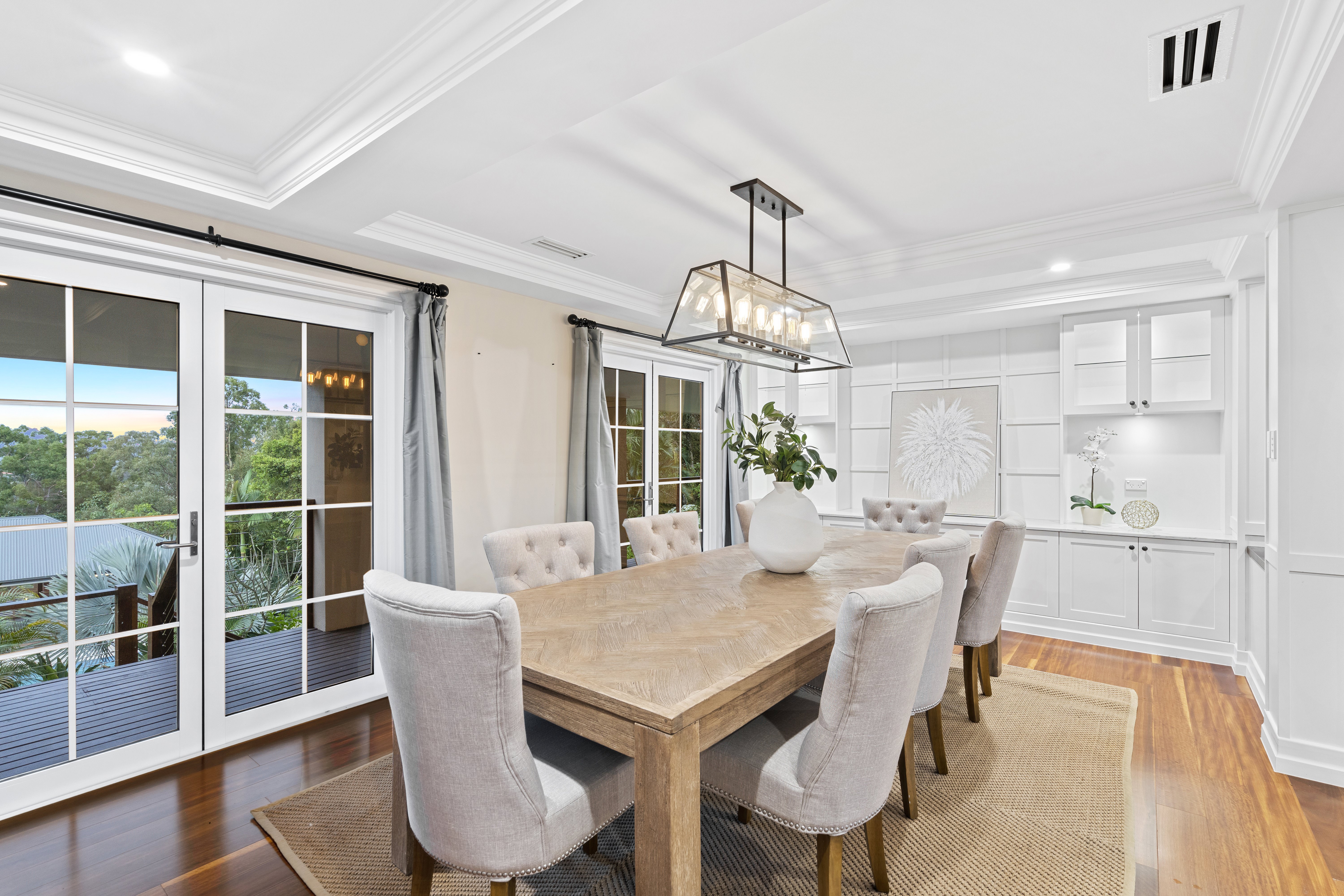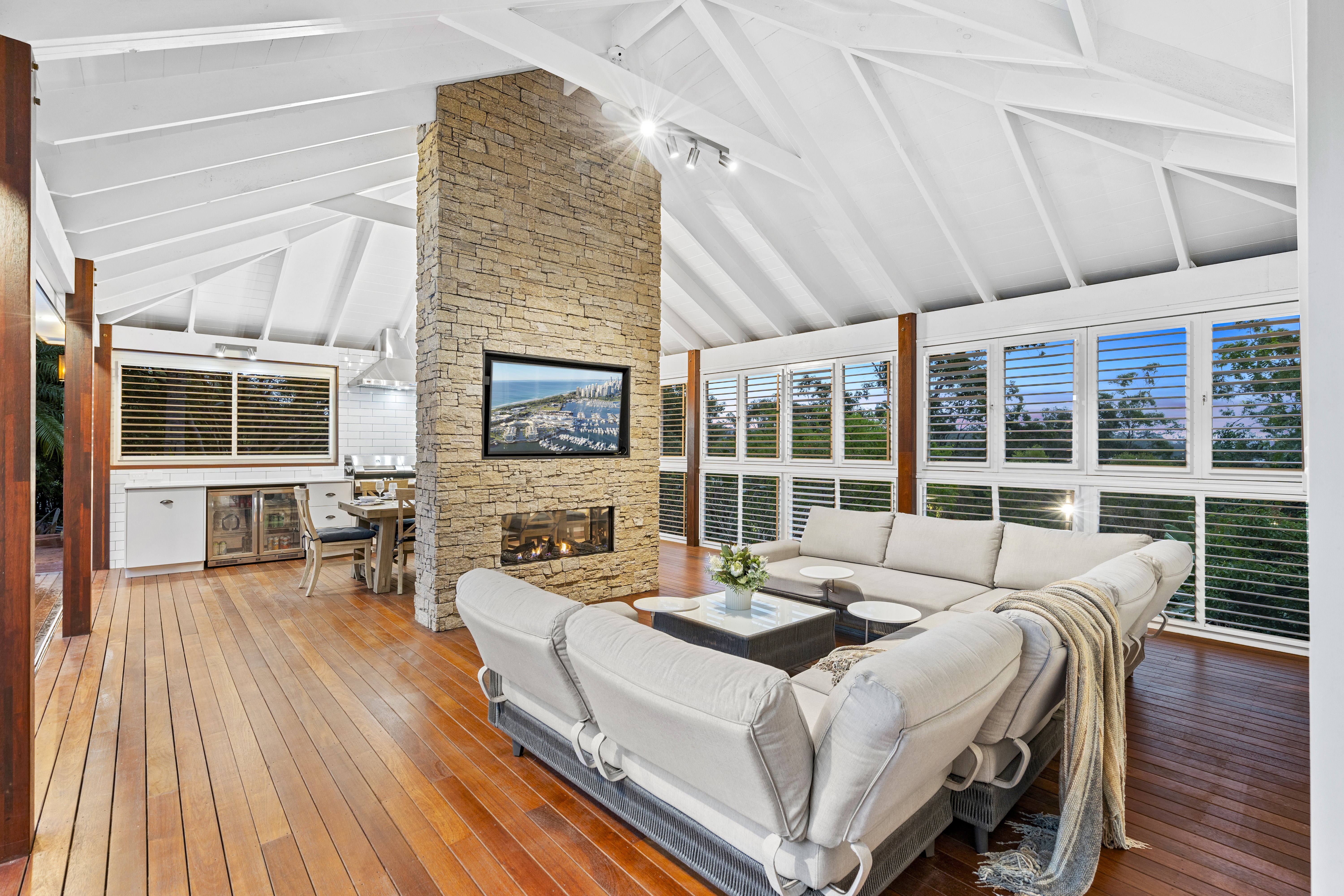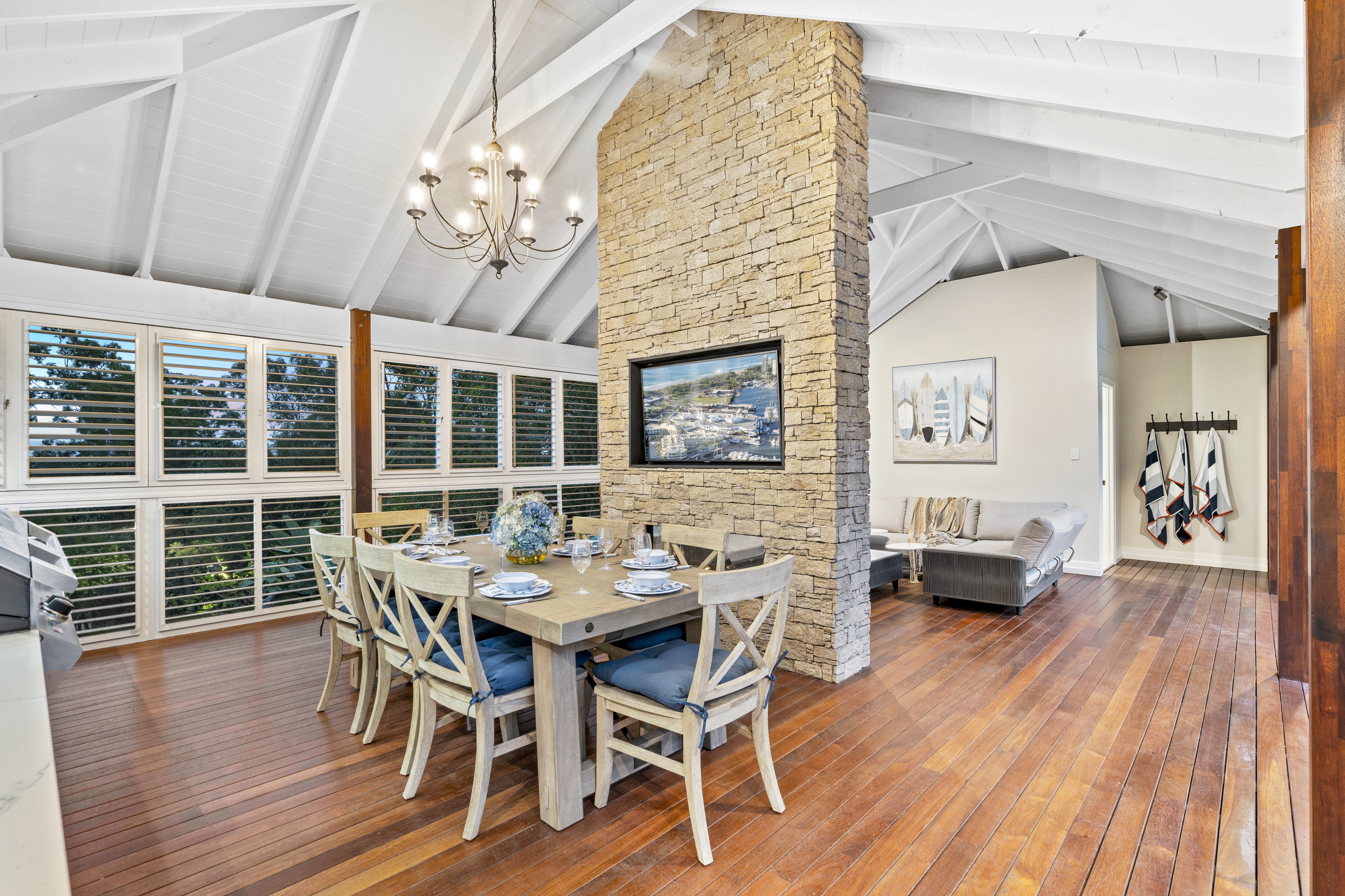 With its blend of Hamptons-inspired charm and modern flair, the home takes full advantage of its elevated positioning with an outlook that can be enjoyed from the wrapped deck.