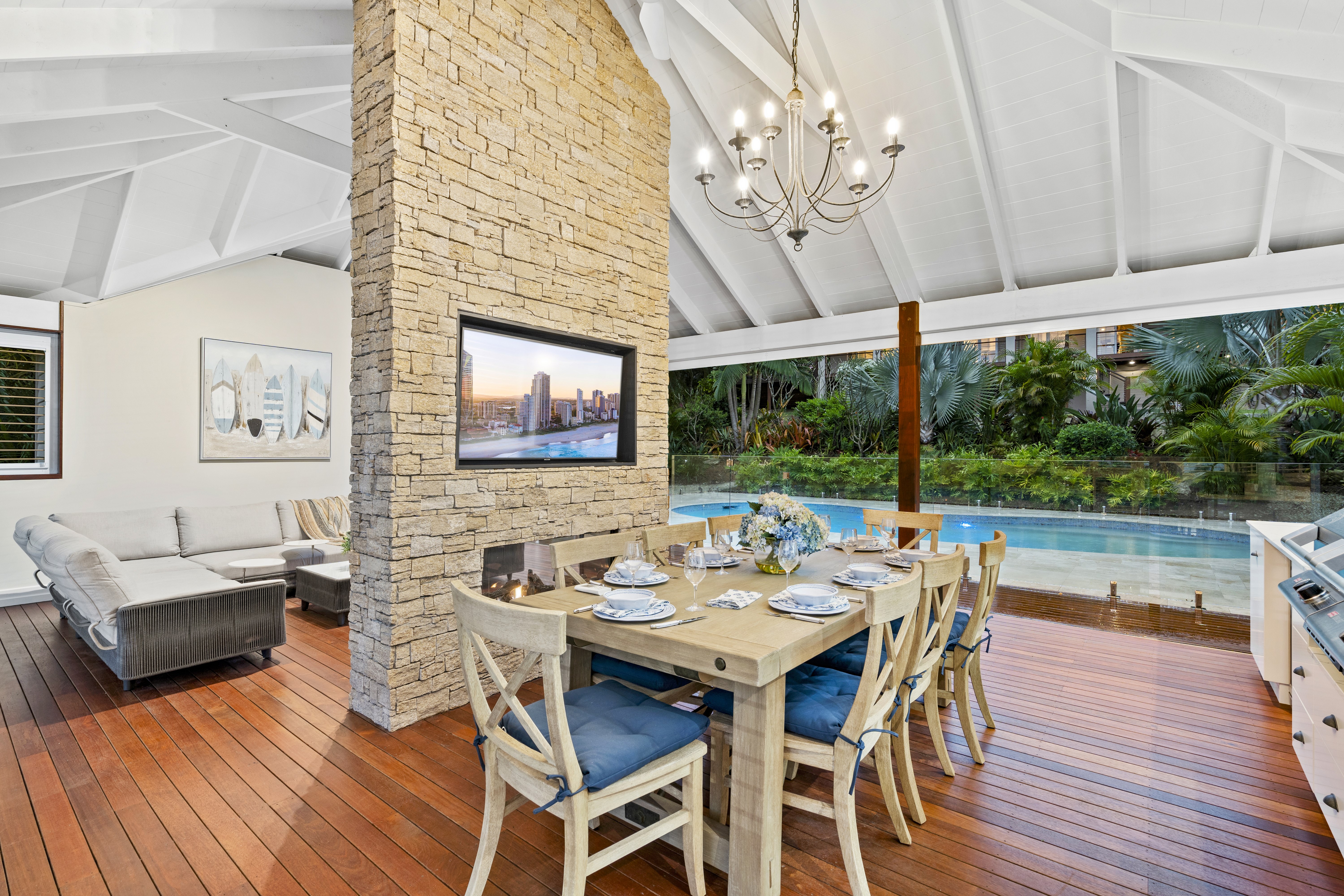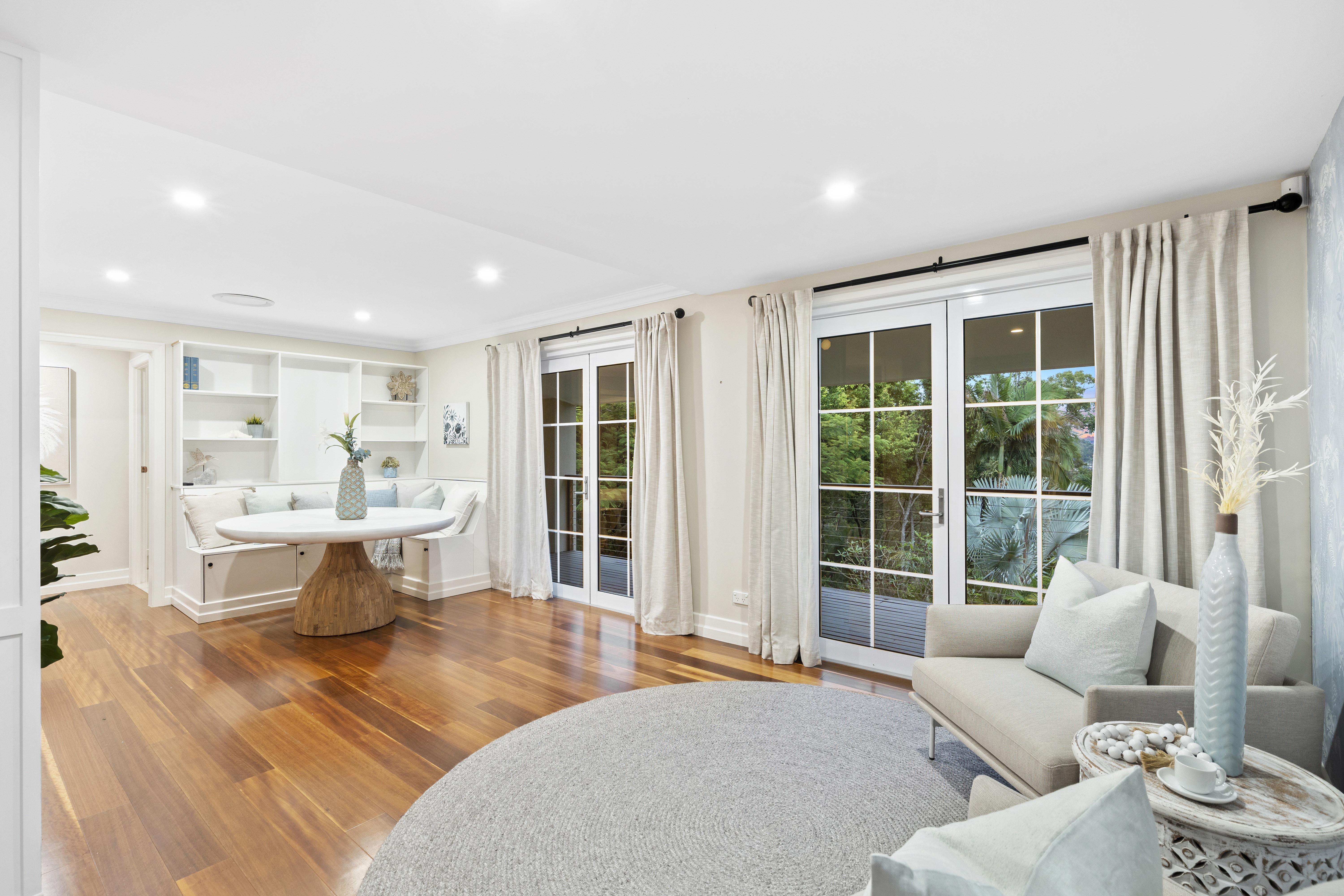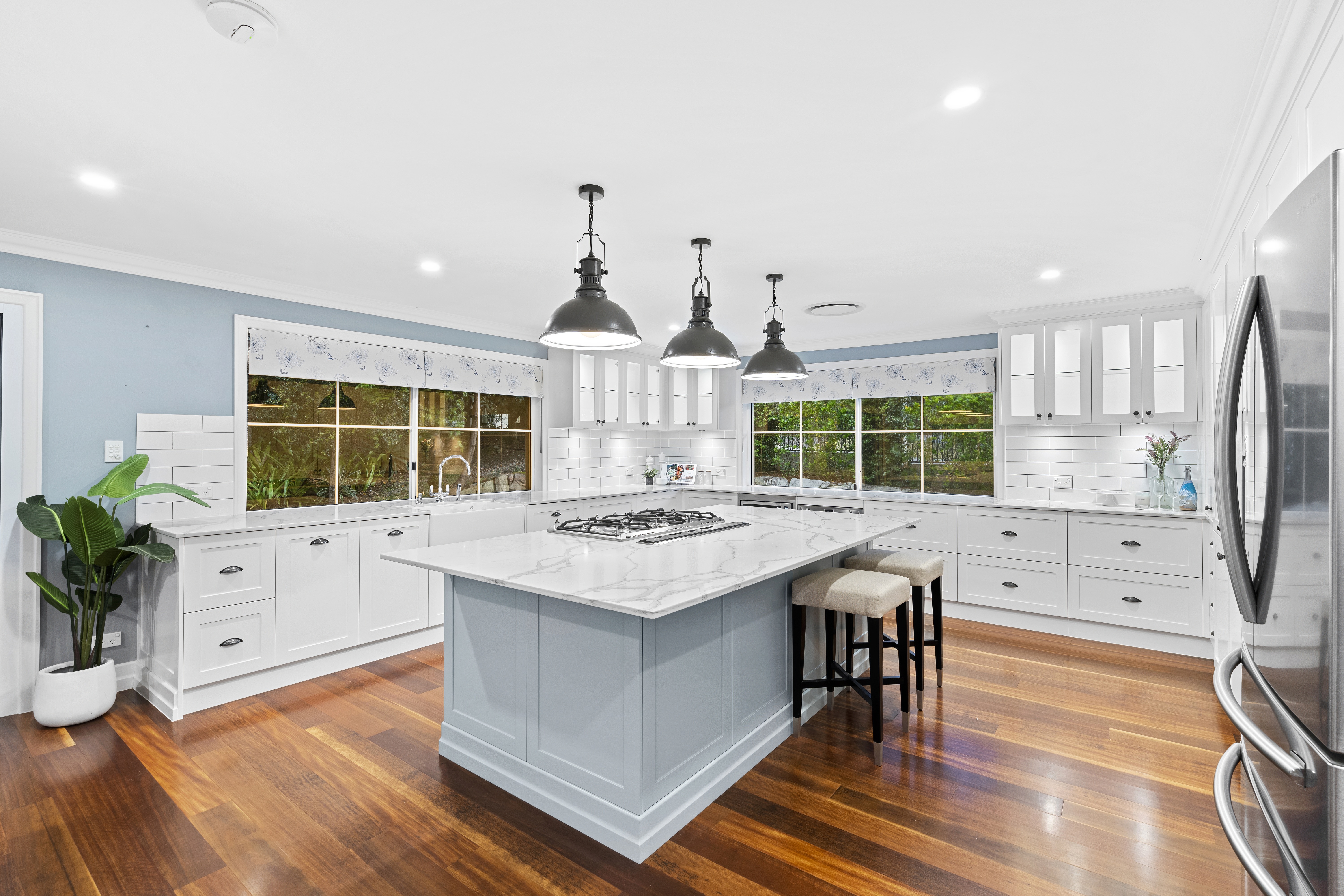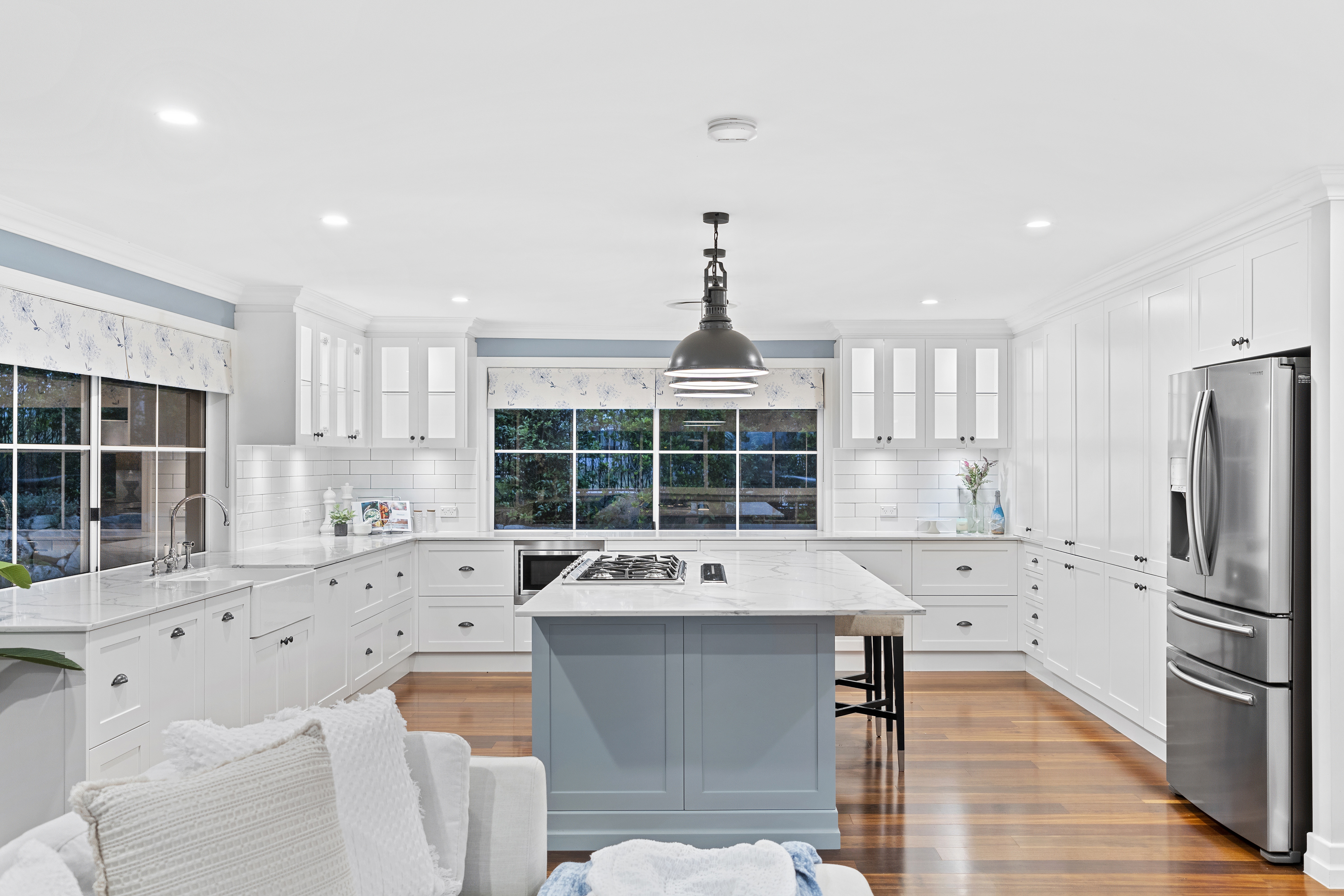 With its blend of Hamptons-inspired charm and modern flair, the home takes full advantage of its elevated positioning with an outlook that can be enjoyed from the wrapped deck.