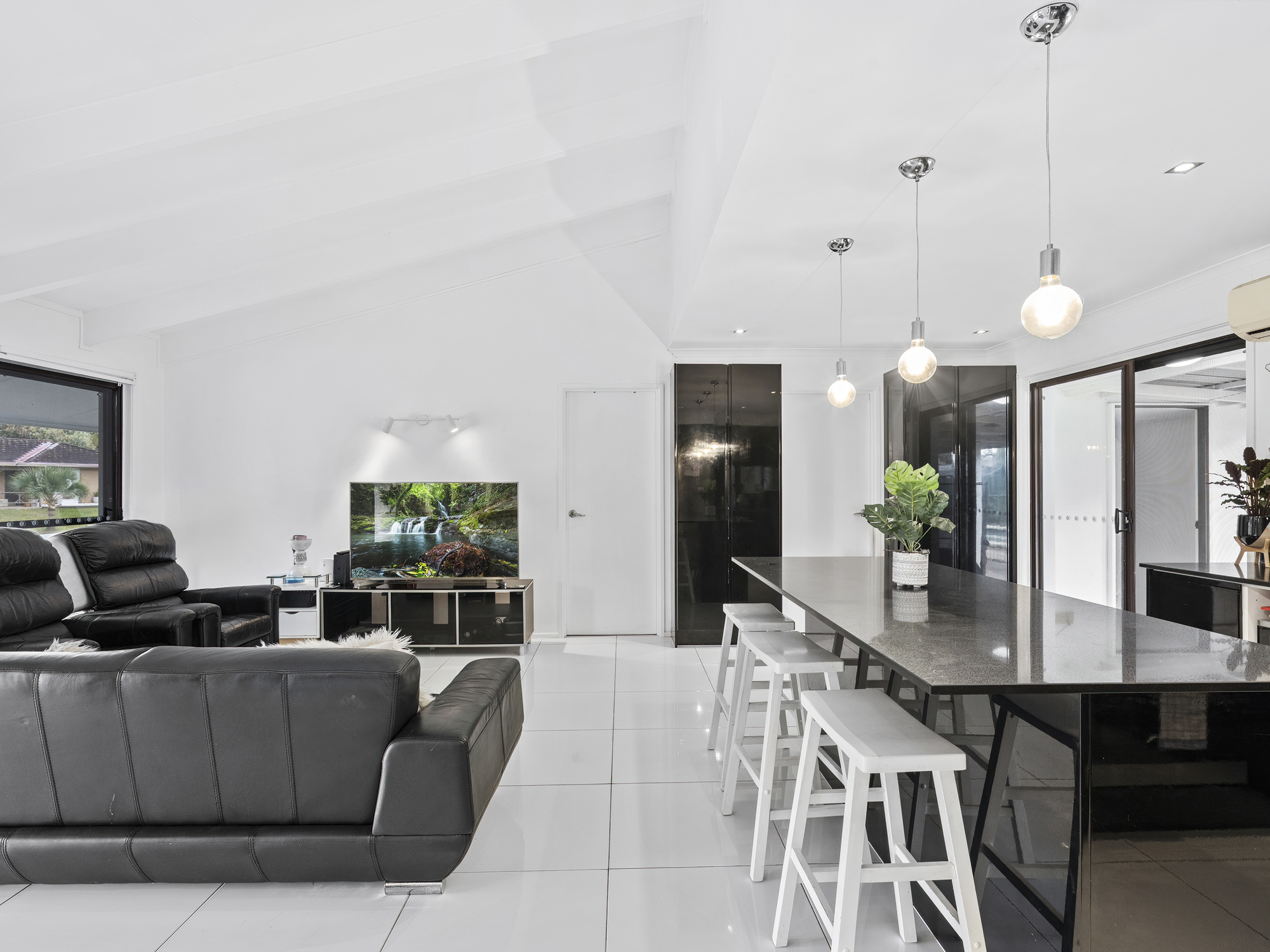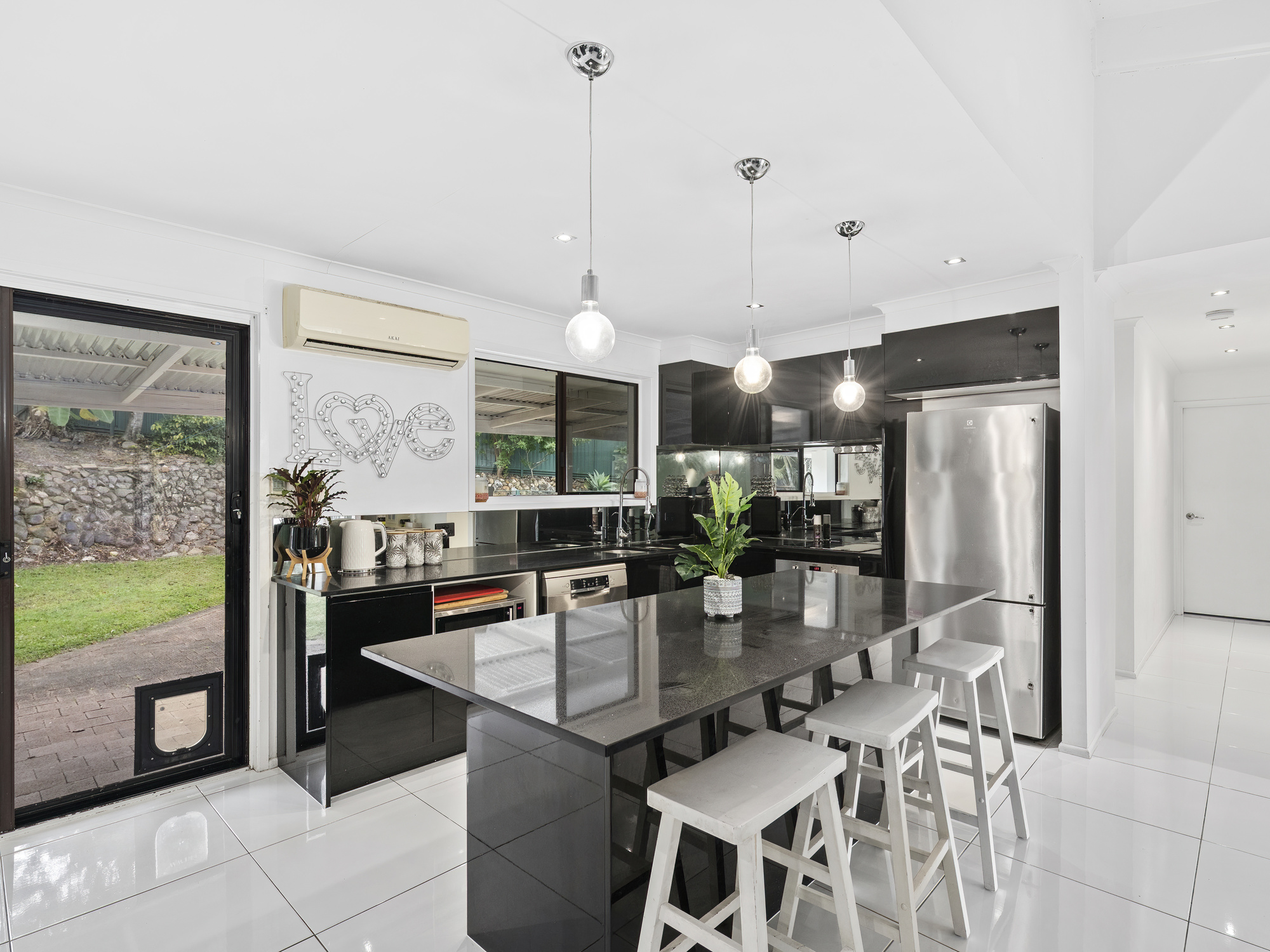 • Well-Equipped Kitchen: Modern appliances and ample counter space flowing directly into spacious outdoor entertaining area.