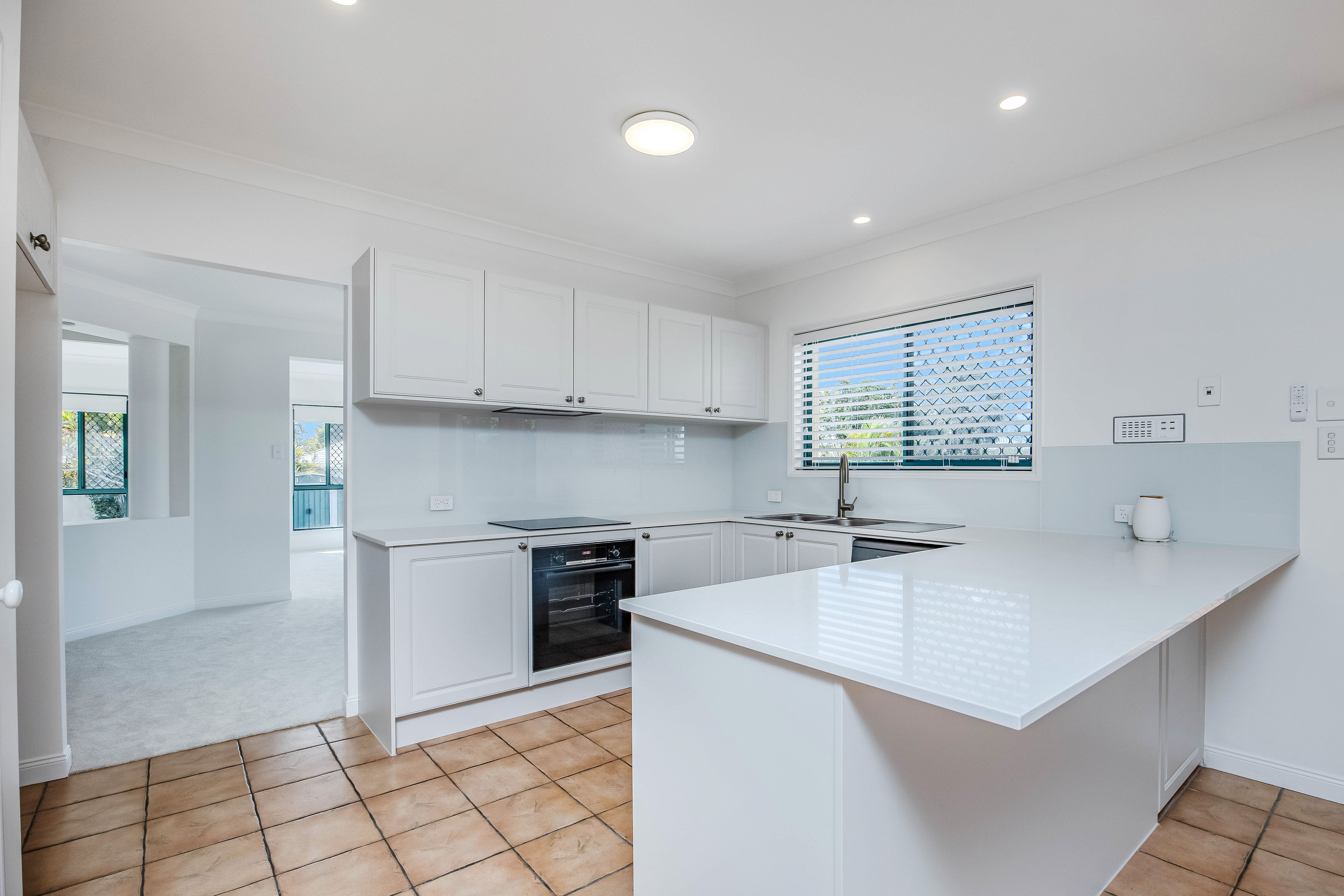 * New stylish central kitchen finished with elegant, engineered stone benchtops * Bosch oven, induction cooktop & dishwasher