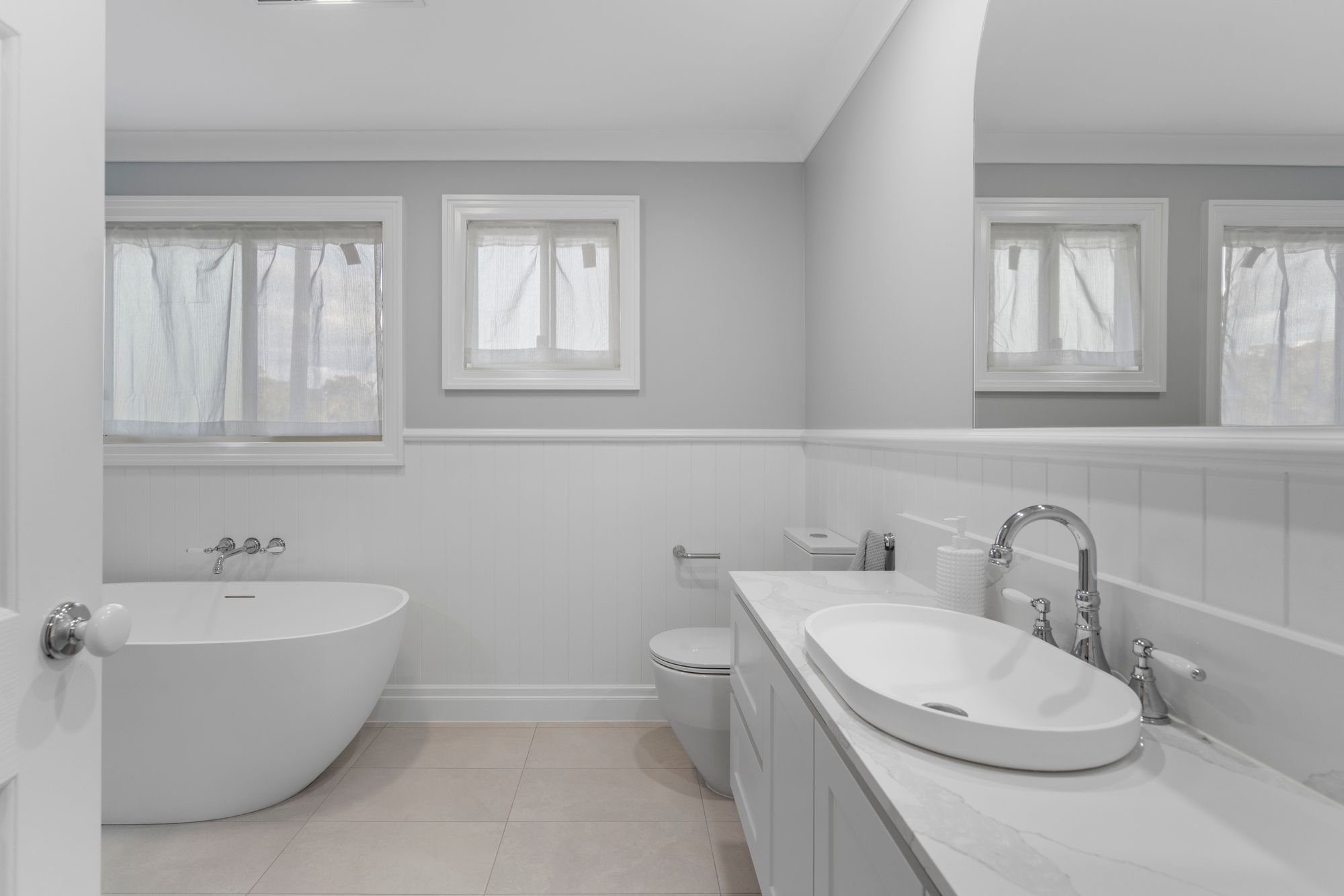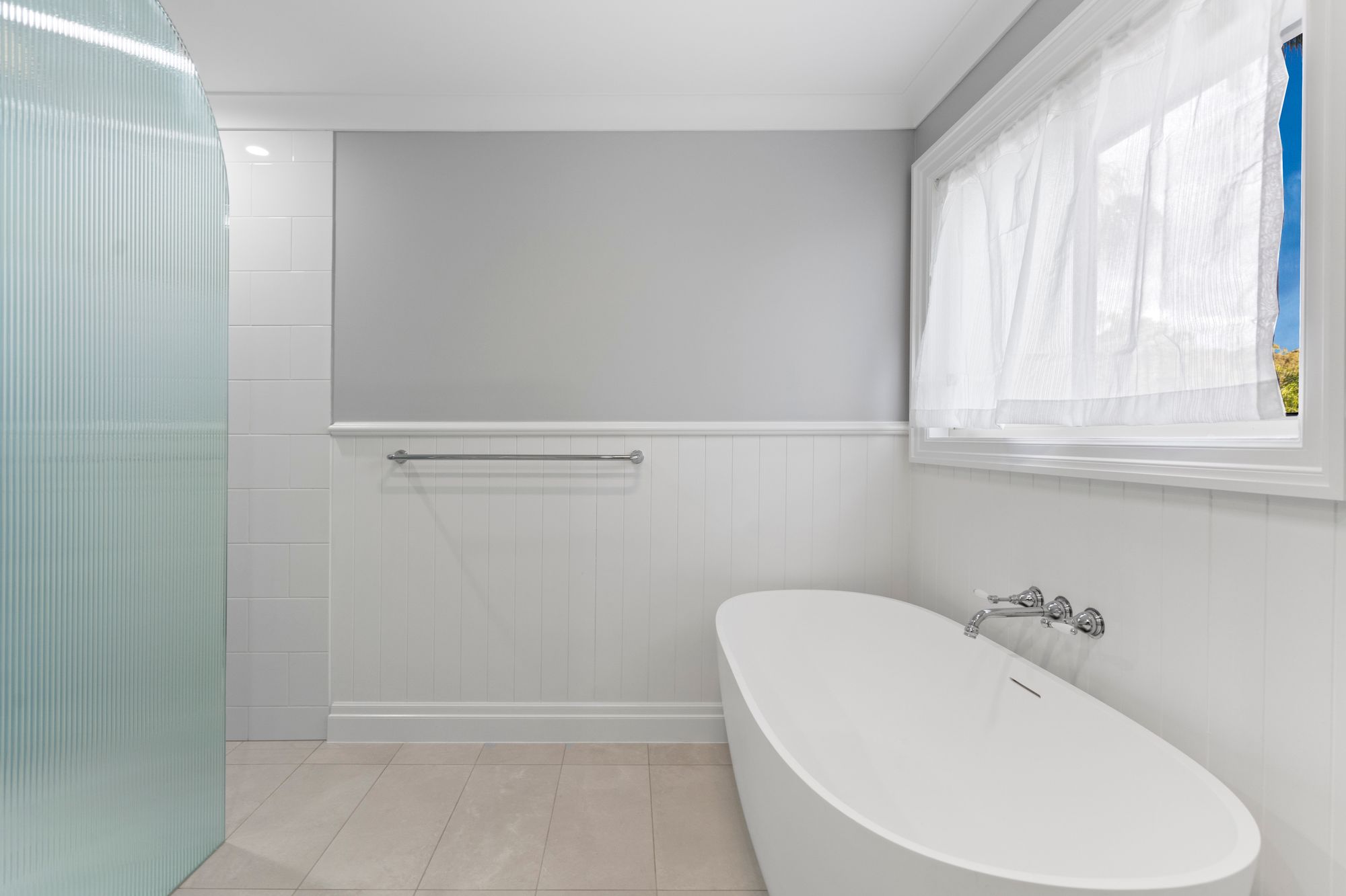 - The stunning family bathroom is impressively renovated and complemented with stone bench & splashback and colonial style tapware. Comes with separate shower and free-standing bath.