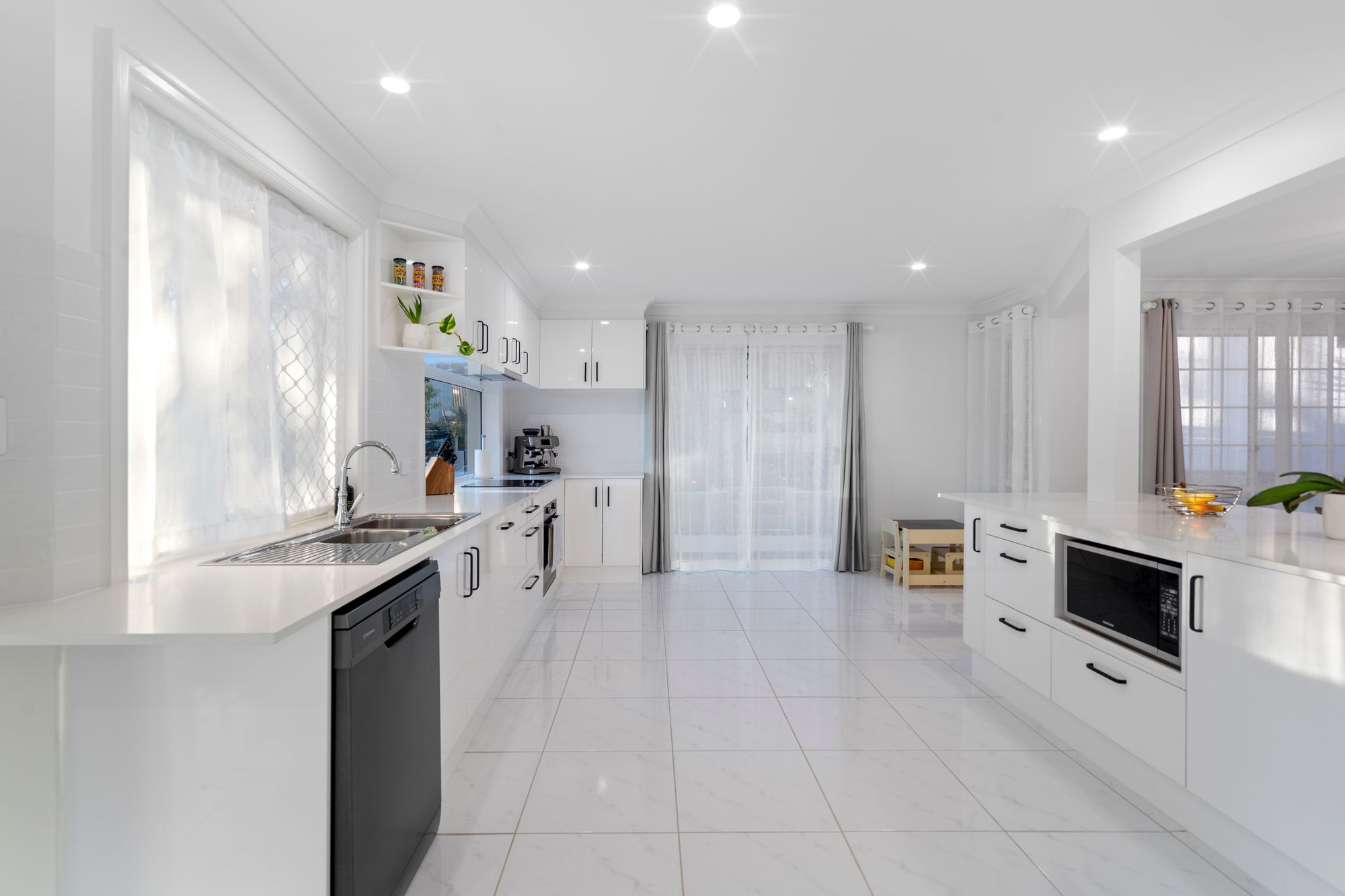 Enjoy the flexibility of two distinct living areas, perfect for family gatherings and entertaining guests. The large open-plan kitchen is a chef's delight, providing more than ample storage and finished with stone benches.