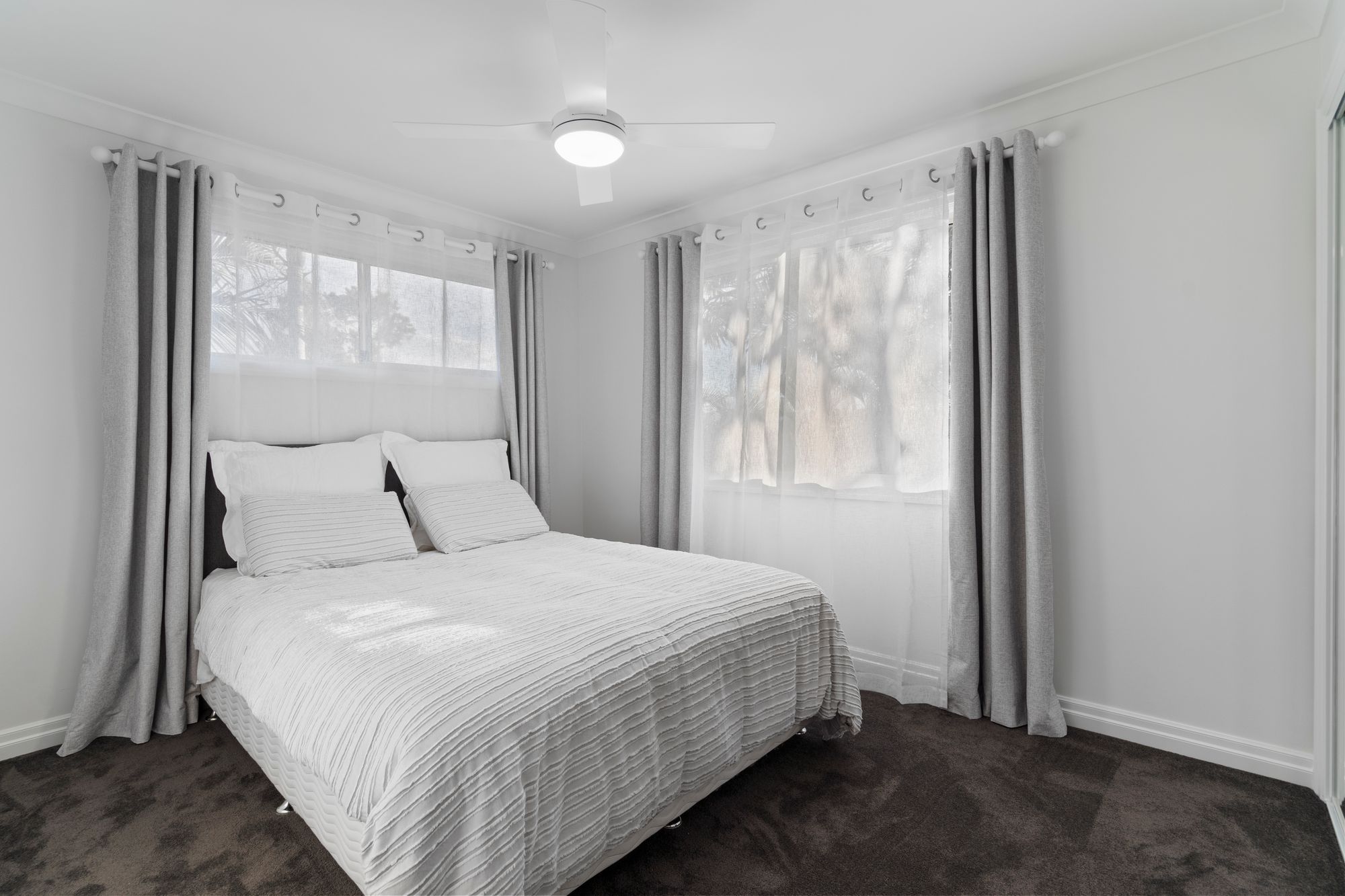- Large Master bedroom with walk-in robe and stunning ensuite. - En-suite is tastefully renovated with herringbone tiles, stone bench top & splash back and colonial style tapware. - A further two bedrooms with mirrored built in robes and ceiling fans.