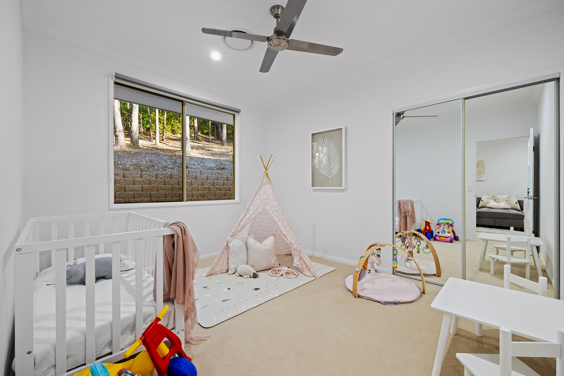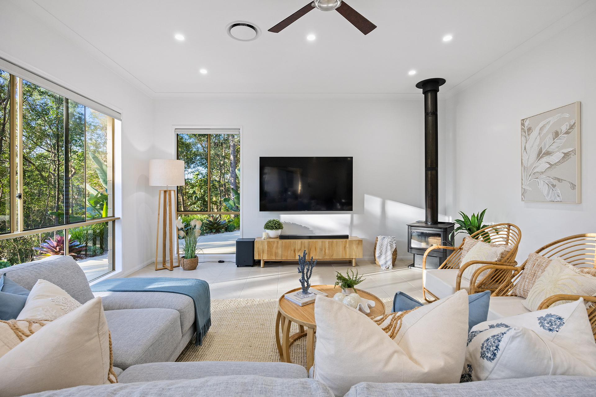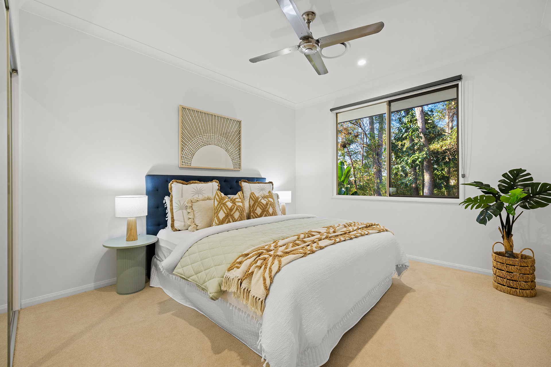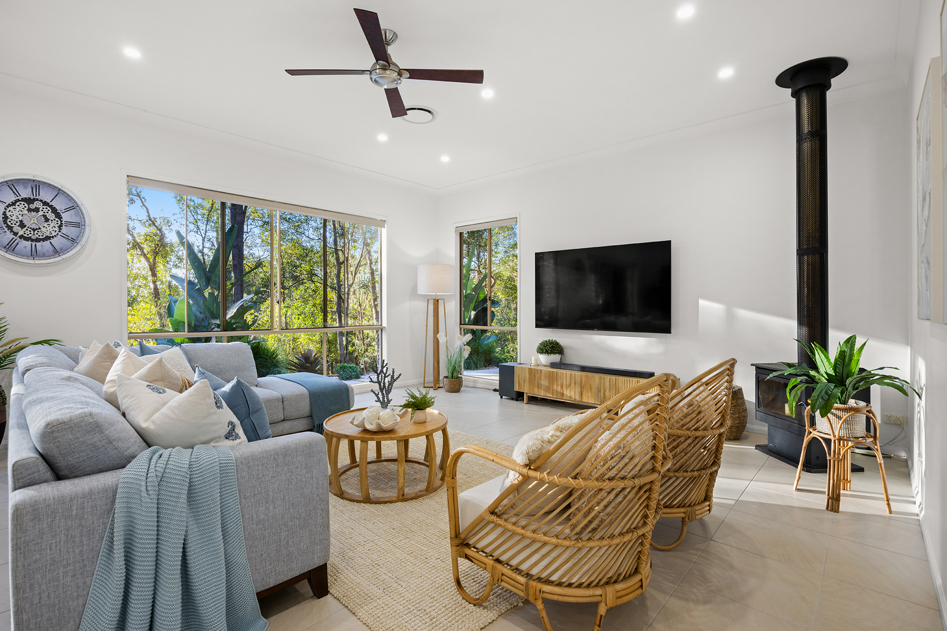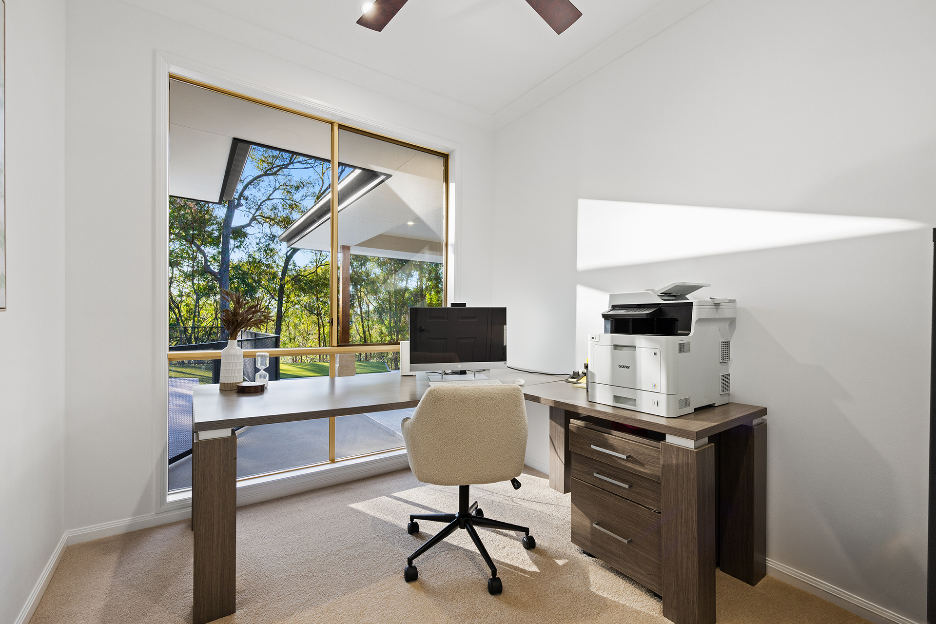 - Beautiful family home atop lush 4,093m2* parcel - Secluded at the end of a shared Body Corporate driveway - Set in a sought-after acreage street offering peace and proximity to amenities, including M1 - Conceived by renowned local building designer Stuart Osman; only one owner since construction in 2009 - Steel frame house with bolstered concrete sandstone brickwork; timeless interior with practical tiles and German craft cabinetry throughout; ceilings are 3m*-high in living areas, 2.7m*-high in bedrooms - Saltwater chlorinated swimming pool surrounded by travertine tiles; premium artificial turf; abundance of secure, grassy land - Covered entertaining area leading to alfresco patio, great for entertaining poolside - Open kitchen, living, dining and sitting zone with beautiful bushland outlook and outdoor access - Living room features combustion wood heater - Kitchen features Ilve 90cm gas/electric oven and cooktop with teppanyaki plate; Miele dishwasher; double sink; island with storage and seating; large walk-in pantry with abundance of storage - Spacious master bedroom features walk-in robe and ensuite with large shower, dual vanity and private toilet - Private wing with a family room and three additional bedrooms, all with built-in robes - Media room with engineered timber floor; sizeable study - Main bathroom features open double vanity, private built-in bath and shower, private toilet - Powder room with single vanity and toilet - Large laundry with sink, storage and outdoor access - Large shed with three electric doors and three-phase power; space for four cars; additional parking space for cars, caravan or trailer - Daikin ducted, three-phase inverted, reverse-cycle air-conditioning; ceiling fans throughout - Ducted vacuum system with floor sweeps in kitchen and main bathroom - Three-phase power to shed; Solahart solar hot water system - Tinted windows throughout; security screens to bedrooms; fully-insulated Colorbond roof -