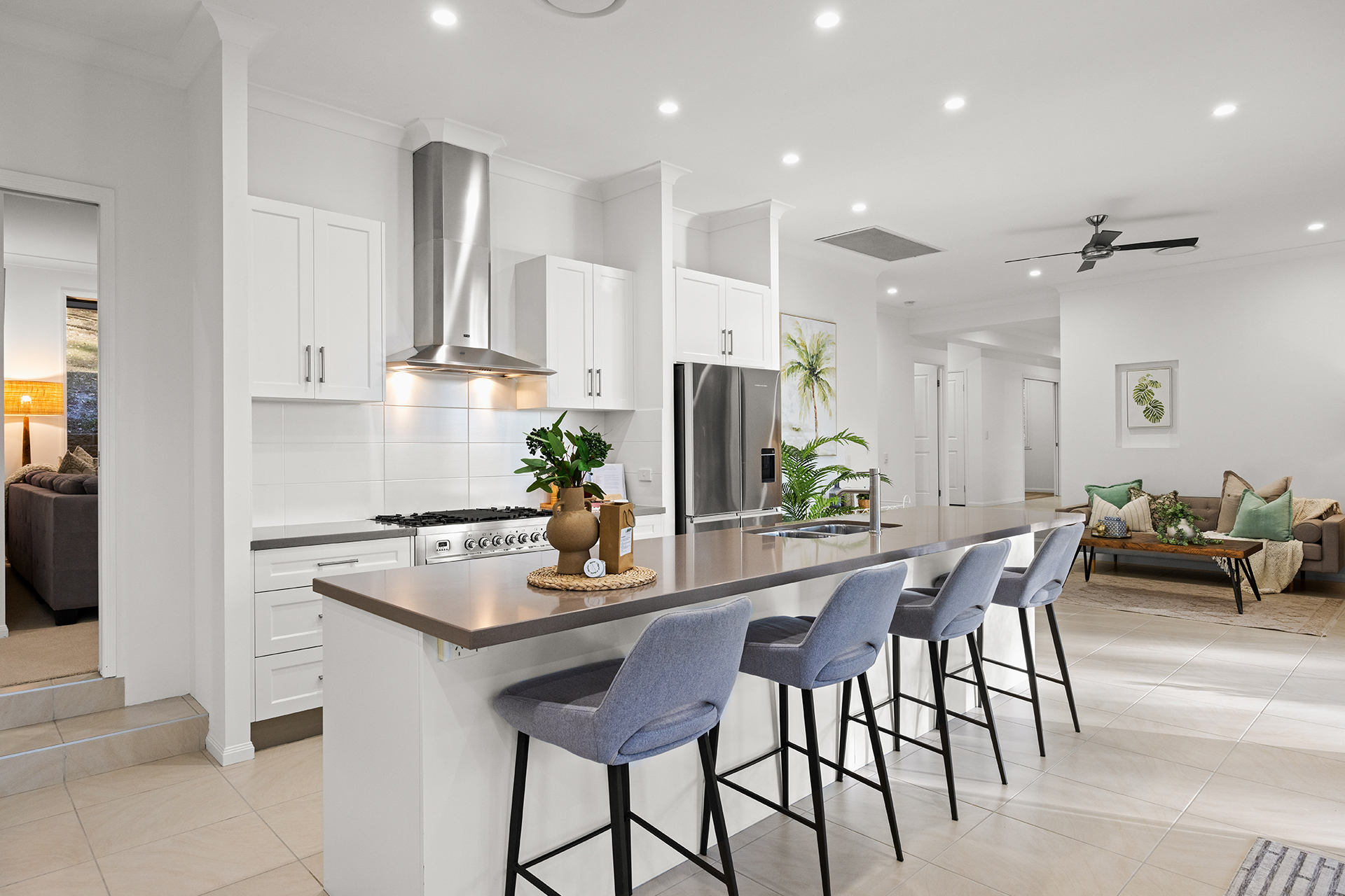 Time together will be best spent in the open living, dining and kitchen zone, where a cosy fireplace lies in wait for winter. Perfect for gatherings small or large, this space flows effortlessly outdoors to the covered entertaining area, alfresco patio and sun-soaked swimming pool.
