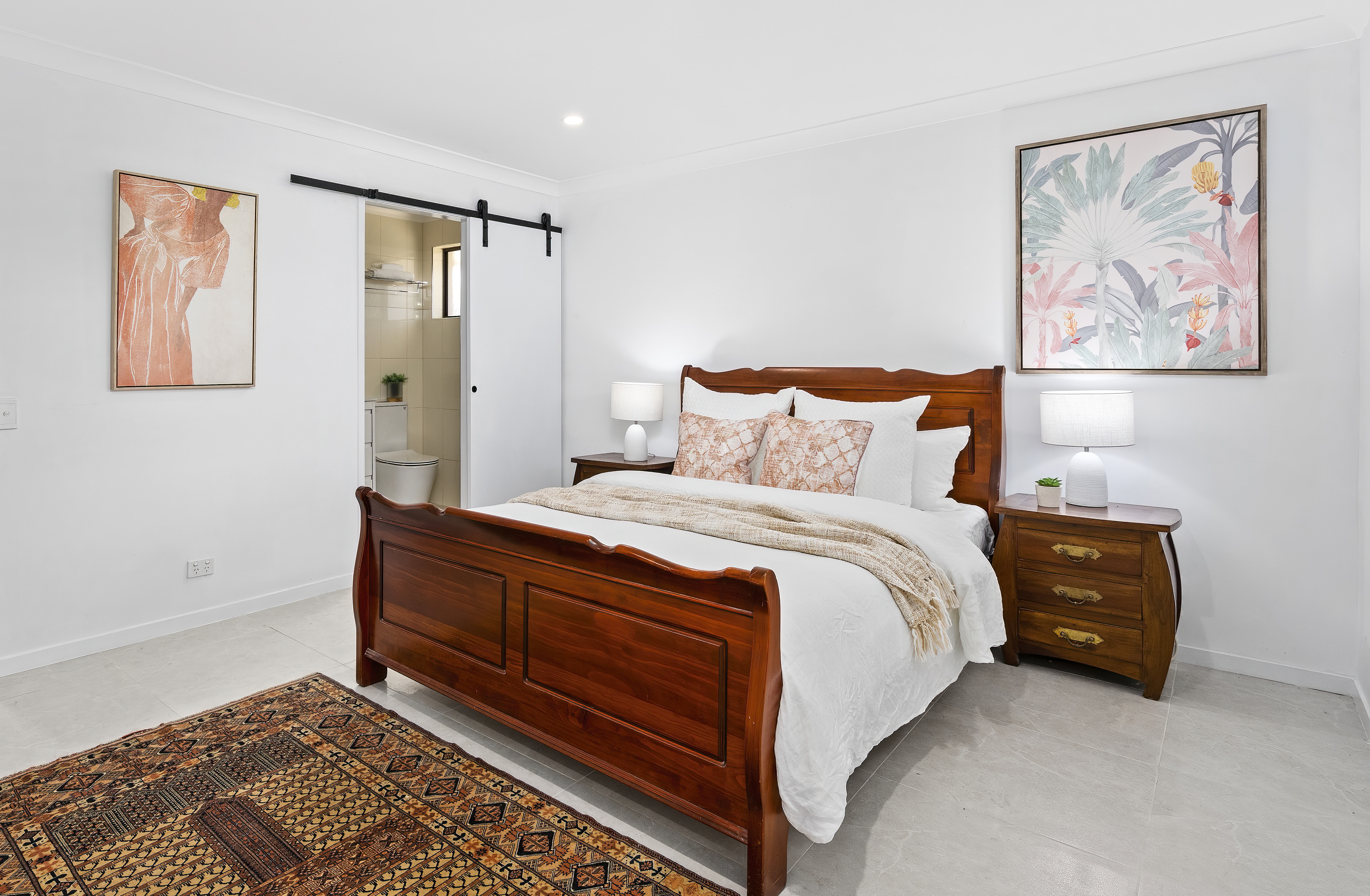 - Sizeable master bedroom with two walk in robes and a charming barn door entry to the private ensuite