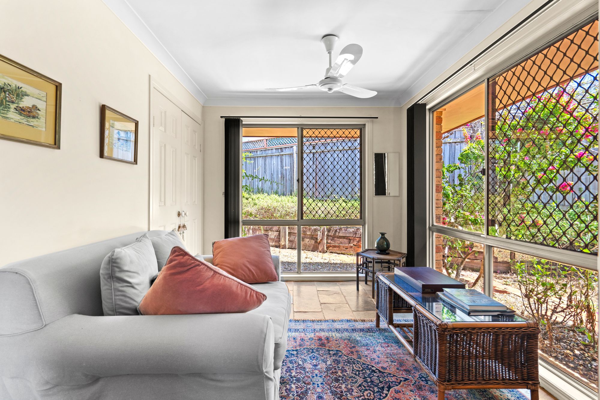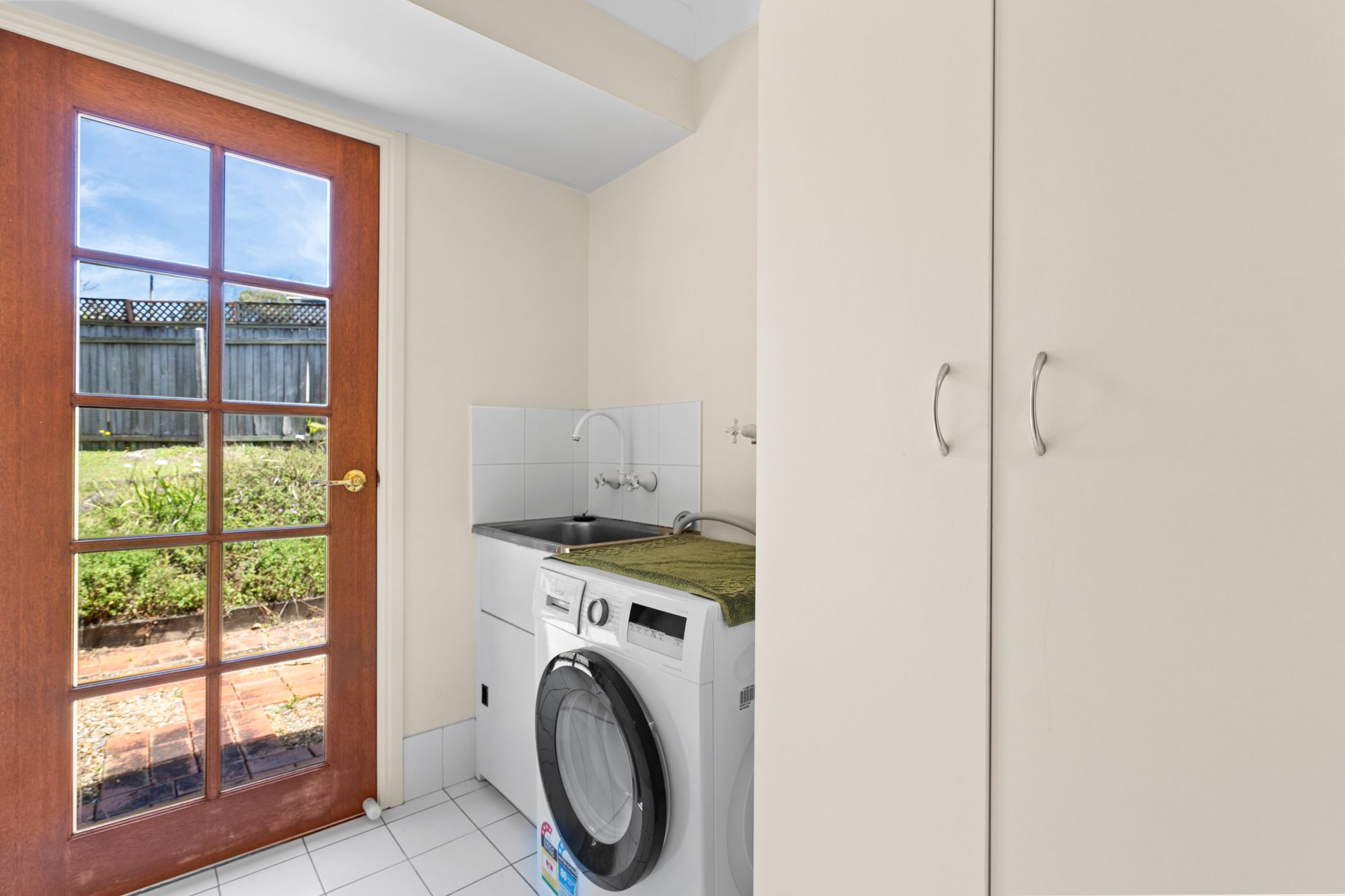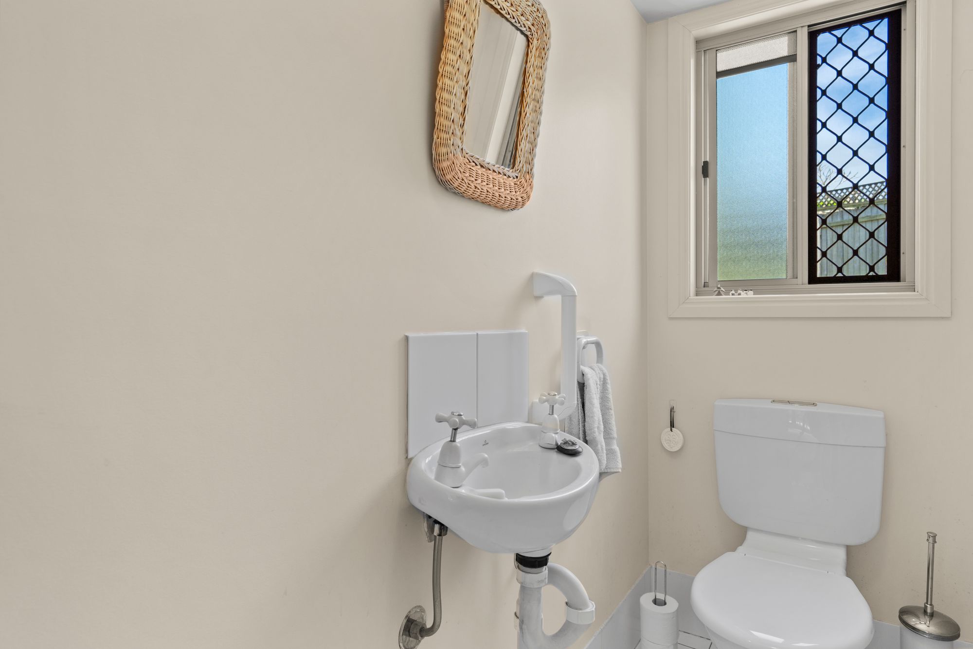• Kitchen overlooking outdoor area. • Generously sized, open plan living and dining area with ceiling fans and air conditioning. • Additional living area/Sitting room with ceiling fan and storage cupboard (could easily be modified to be a third bedroom) • Generously sized Master bedroom with ceiling fan and built in robes. Patio doors open to outdoor area. • Second bedroom with ceiling fan and built in robe. • Family bathroom with corner spa bath, separate shower, and vanity. • Separate toilet/powder room (with additional vanity) • Separate laundry with external access.