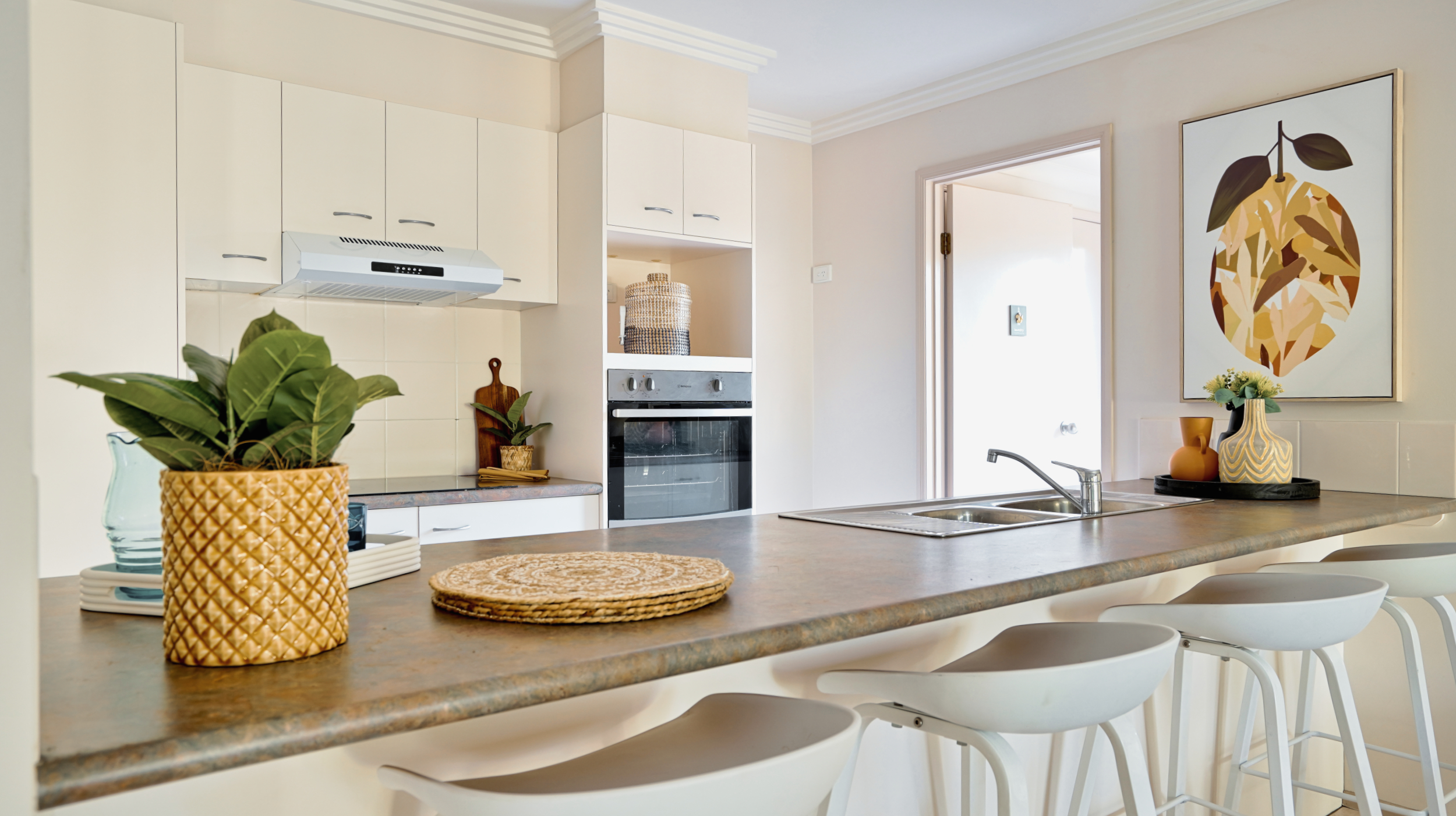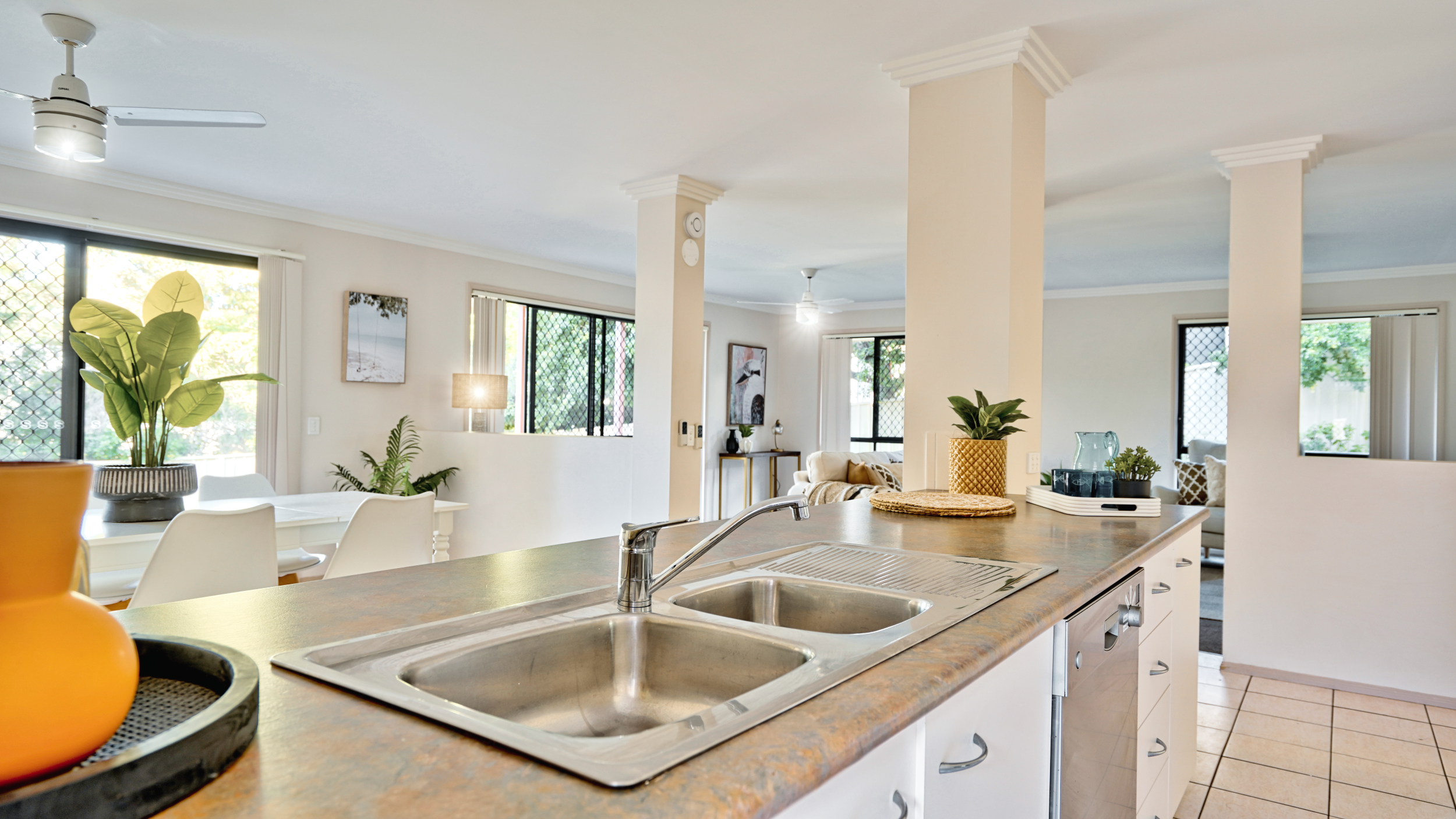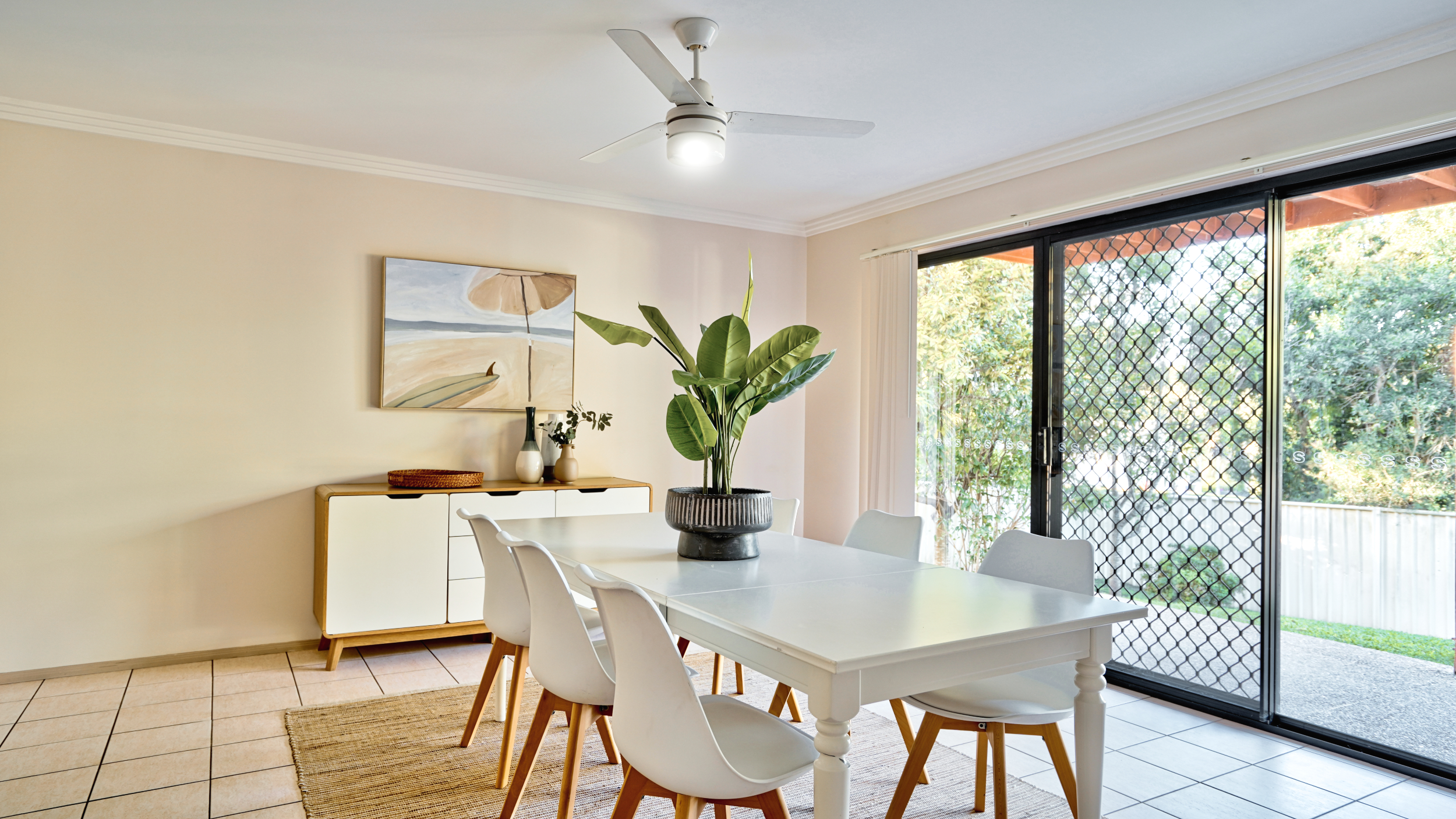 • Spacious family rooms overlook the leafy backyard - Informal living and dining area with easy-care tiles flows to the outdoors • Security doors and screens * Large side access to the rear yard - kids and pets will love the fully-fenced backyard with space for a pool, split system air-con, NBN connectivity, double remote lock-up garage