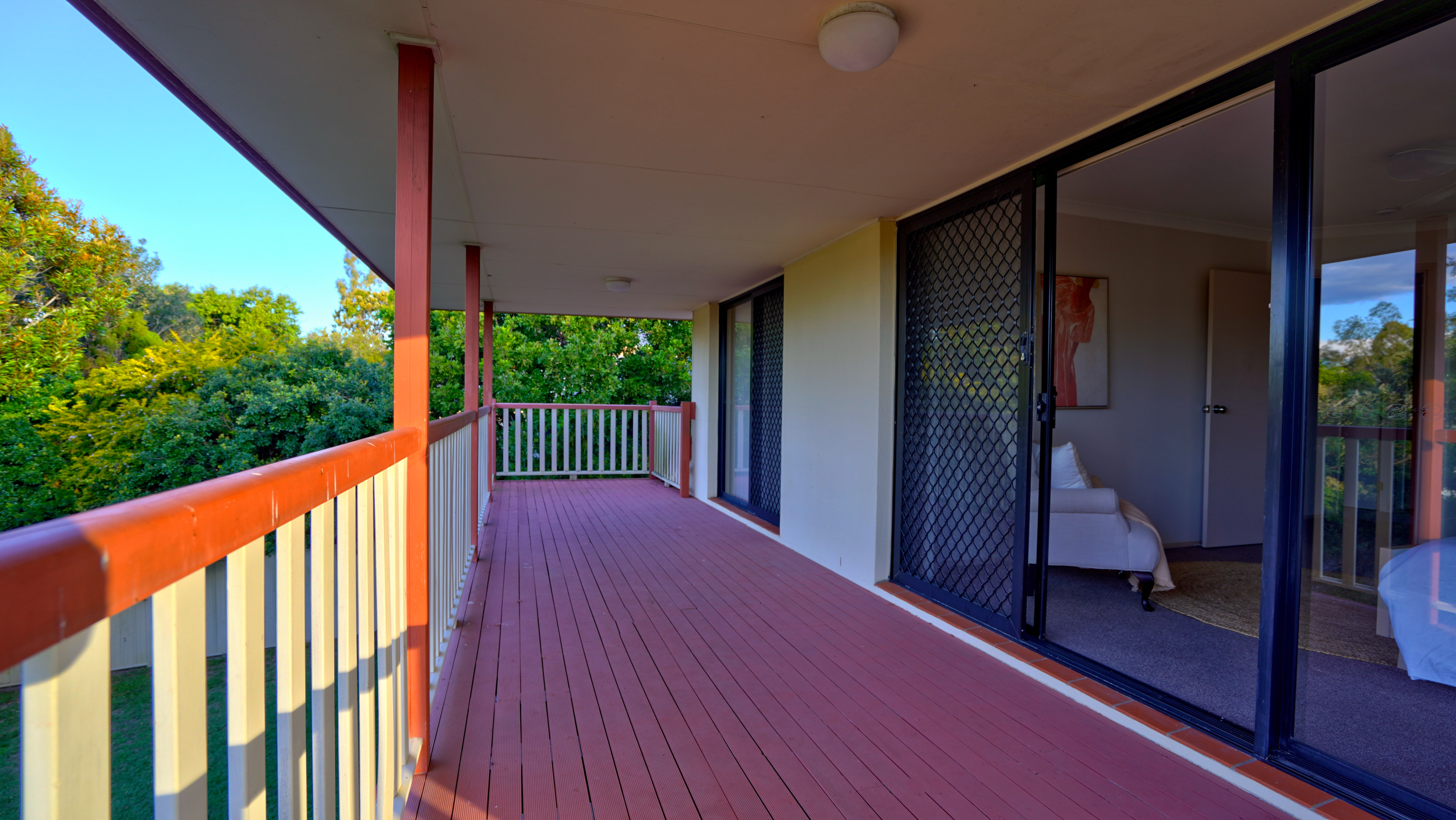 The private and peaceful sunny deck off the master bedroom facing northeast.