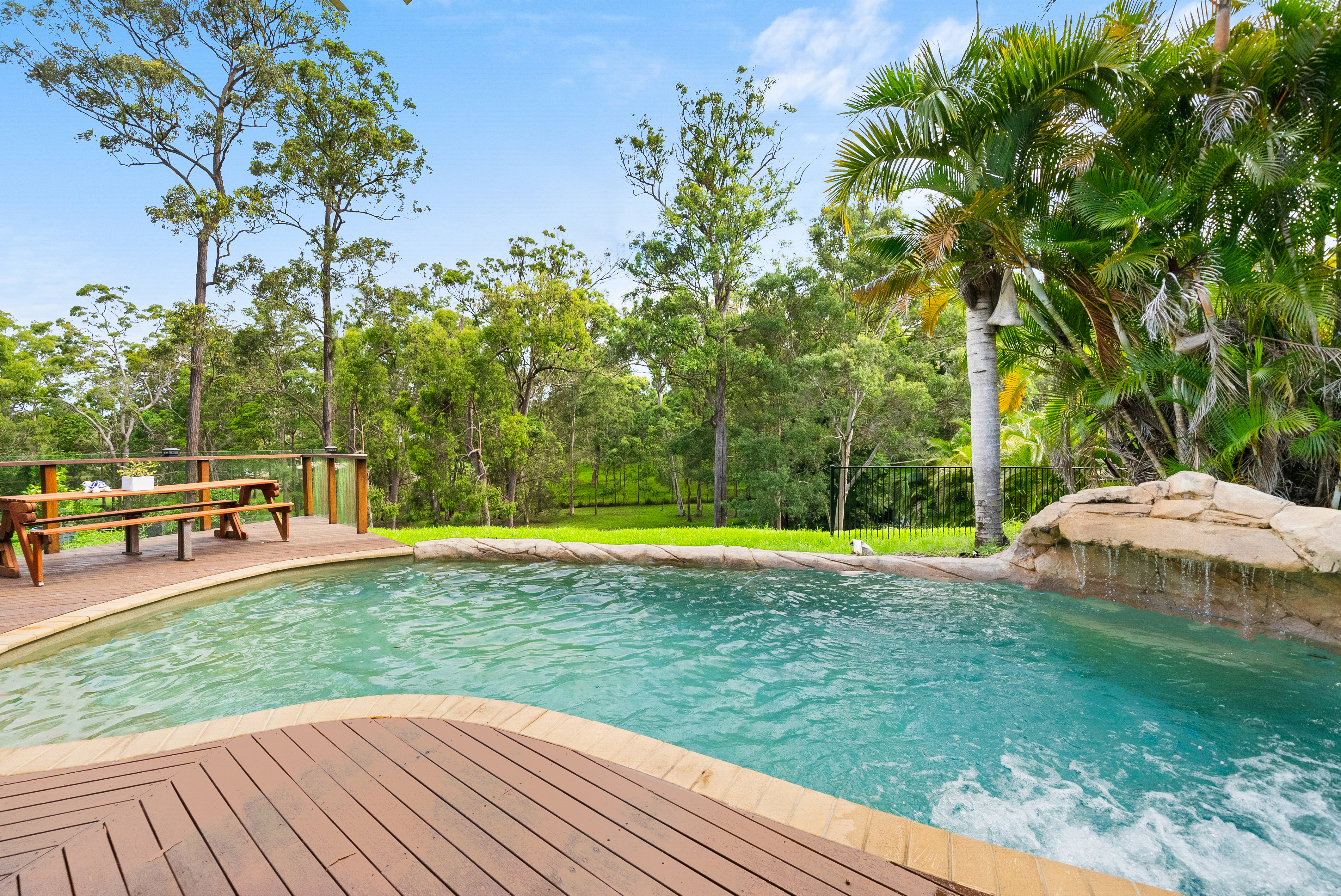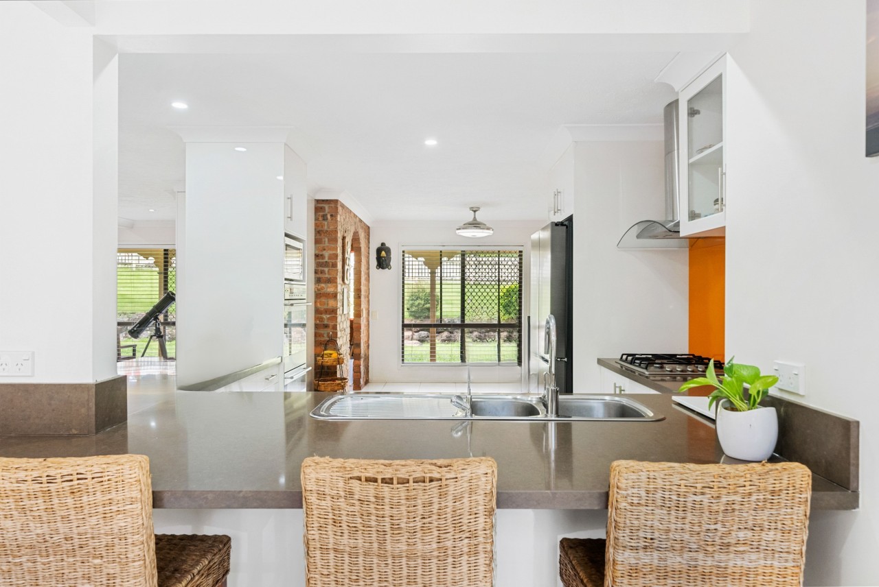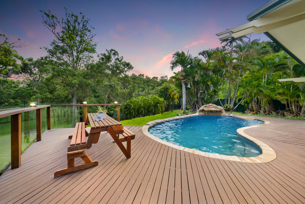 PROPERTY HIGHLIGHTS - Expansive 5,357sqm block in quiet cul-de-sac with side entry access - Open-plan living/dining opening out to resort-style swimming pool with spa jets and waterfall features, surrounded by tropical gardens - Prepare gourmet meals in this well-equipped kitchen with quality appliances, gas cooking and ample storage - Entertain effortlessly around the exposed brick fireplace and inbuilt wet bar