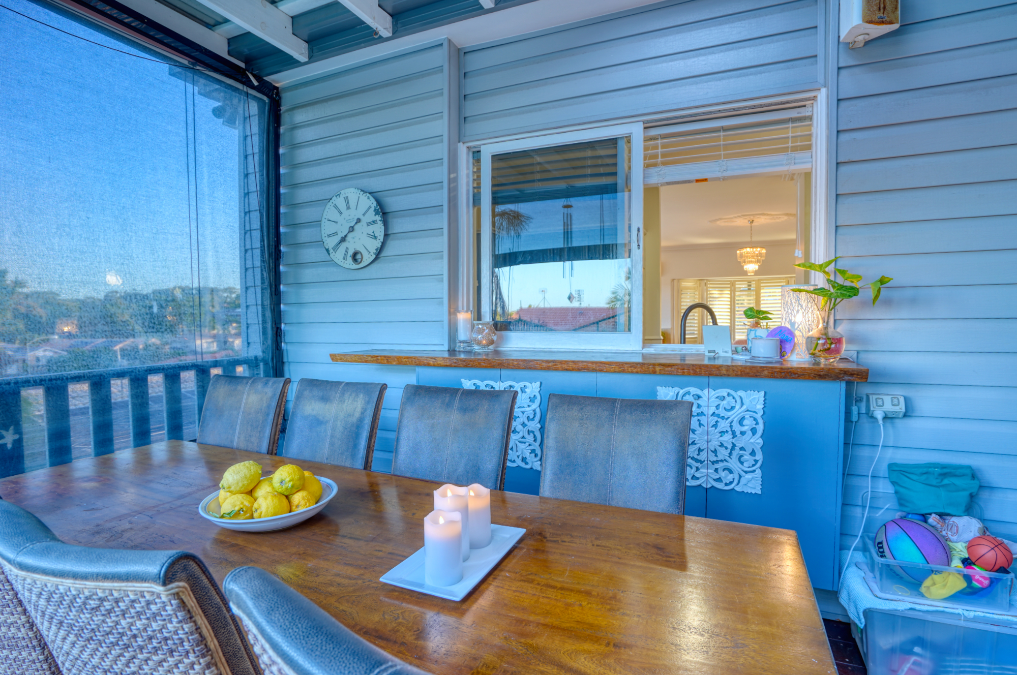 • Dual Living: With fully self-contained living spaces, including a downstairs unit with a private entrance and additional kitchenette, this home is perfect for extended families or as a rental income opportunity. • Entertainer’s Delight: The expansive wrap-around verandah and large alfresco deck, equipped with weather-protection blinds, provide year-round entertaining spaces overlooking the lush, tropical gardens and solar-heated pool. • North-Facing Pool: Dive into the crystal-clear, saltwater pool surrounded by a peaceful oasis, complete with fishponds and mature fruit-bearing trees. • Classic Queenslander Charm: Featuring polished timber floors, high ceilings, ornate detailing, and beautiful stained-glass windows, this home blends timeless design with modern functionality. • Private Garden Paradise: Enjoy a tranquil escape with softly streaming water features, a secluded courtyard, and ample greenery, offering peace and privacy right at your doorstep.