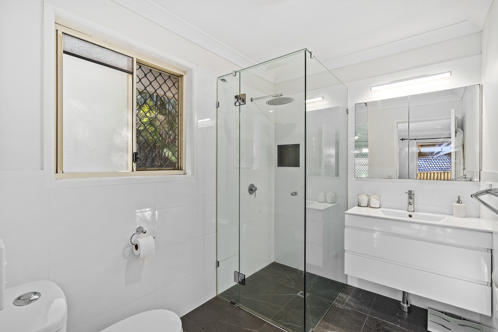 Features include: • Spacious master bedroom with air-con, ceiling fan, walk in robe and renovated ensuite with wall hung vanity with stone top, rain head shower and shaving cabinets
