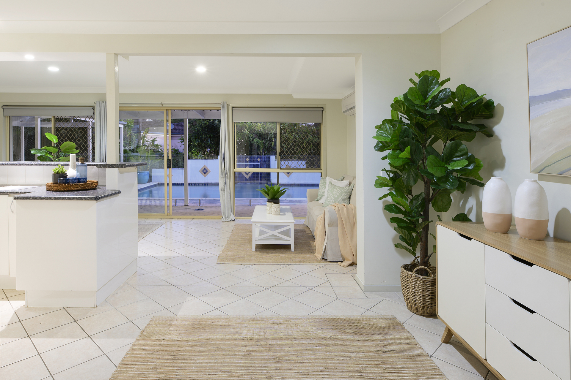 * Dual living potential with very versatile floor plan and separate living spaces * Inviting lounge and sitting area looks to the front yard * The large kitchen offers an abundance of storage & bench-space, with great visibility to the pool and outdoor areas * Big dining/living space sits adjacent to the kitchen and flows easily to outdoors