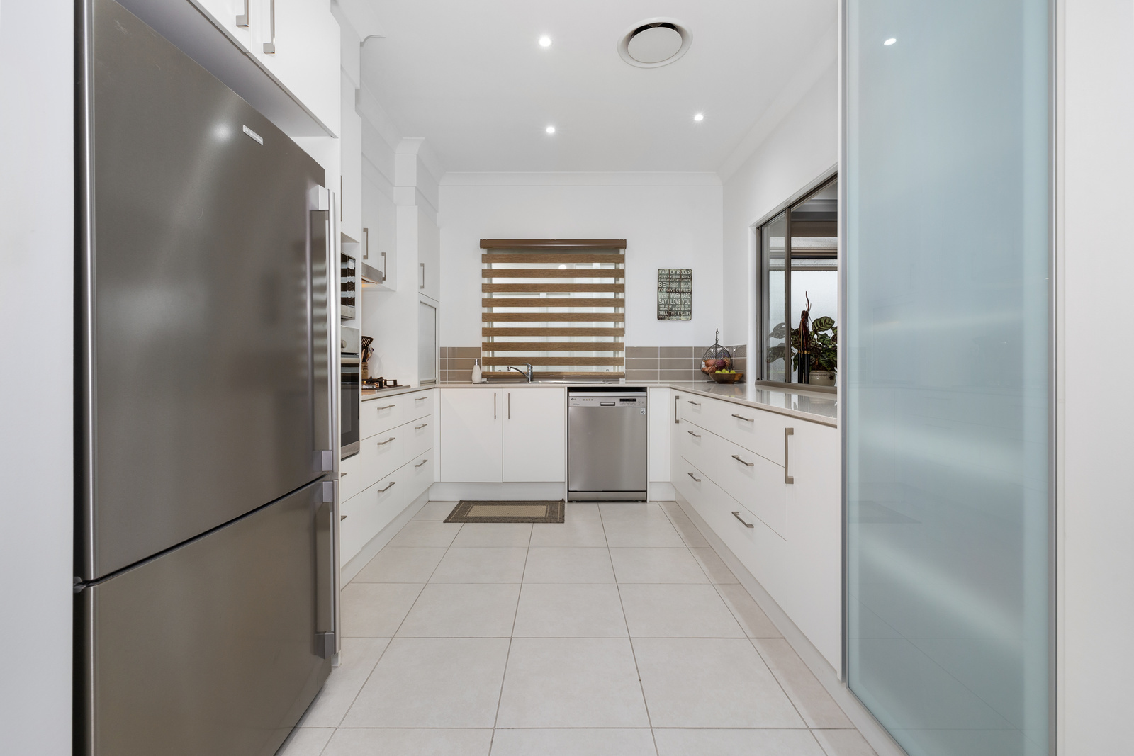 The open-plan design welcomes you into the main living and dining areas at the front of the home, seamlessly flowing into the stunning internal atrium-style alfresco. This fully enclosed Florida room, complete with remote-controlled privacy screening and a ceiling fan, is perfect for stylish indoor-outdoor living.