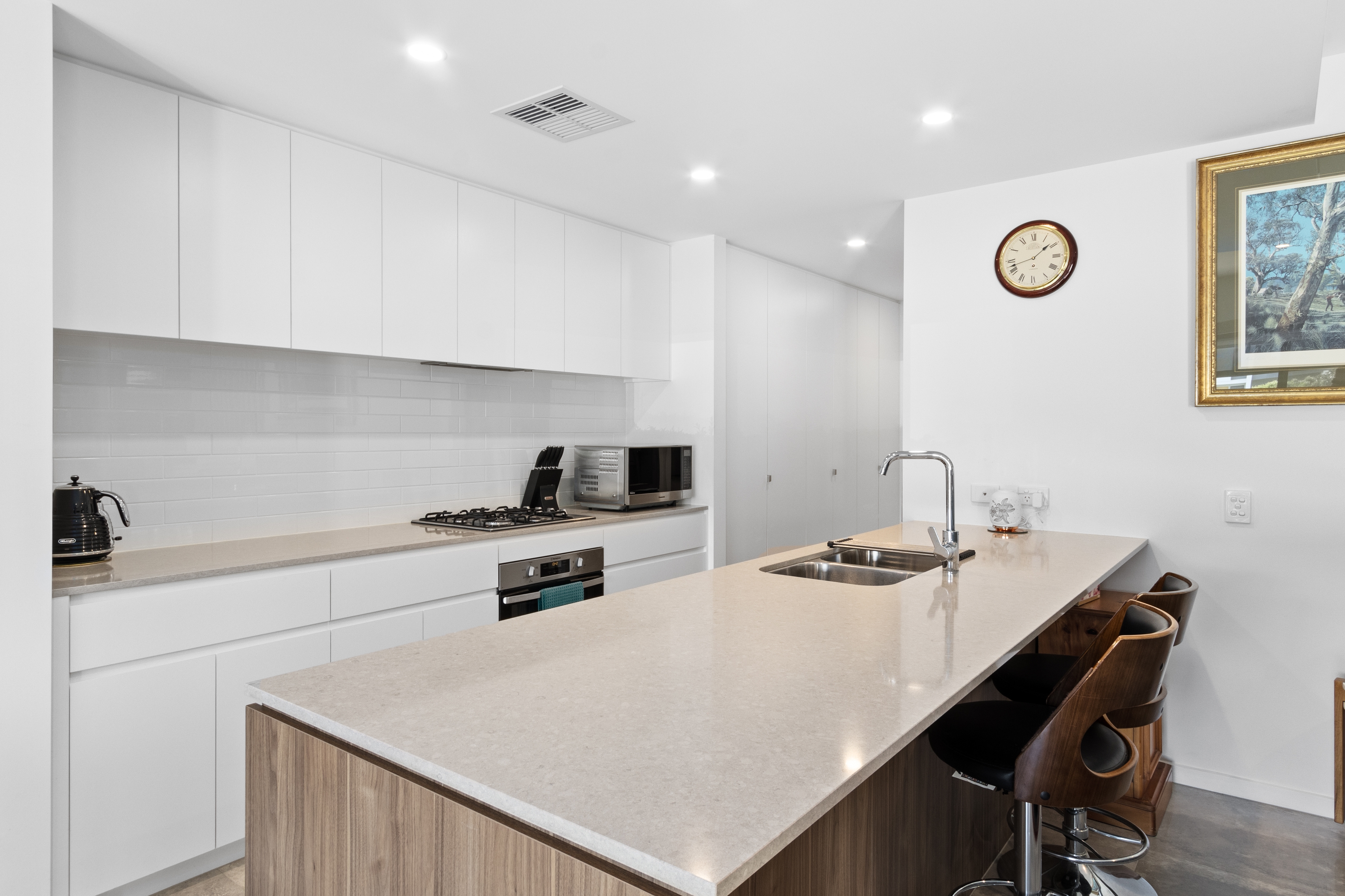 This townhouse boasts three spacious bedrooms, each featuring plush carpets and sliding wardrobes, providing ample storage. The home includes two modern bathrooms; the master ensuite impresses with a his and hers sink vanity, a sleek wooden vanity unit, and stylish brown accent tiles. The open-plan kitchen, dining, and living area is perfect for entertaining, with a spacious kitchen that includes a wooden breakfast bench and generous cupboard space.