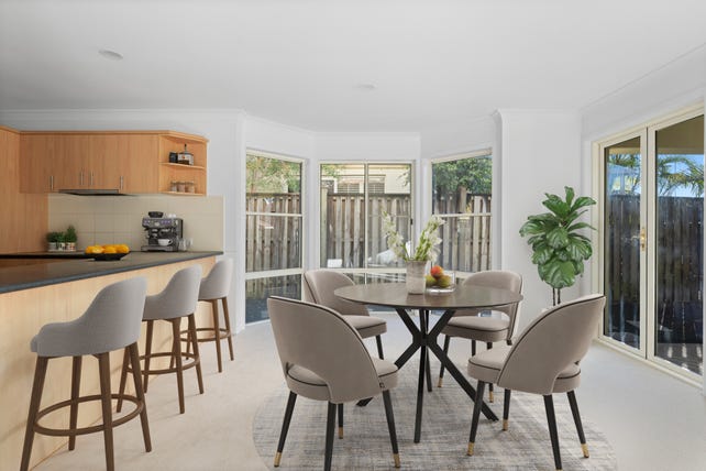 Welcome to one of the most enviable positions in The Mews, a secure, tightly held gated community of just 34 duplexes. This two-storey residence is one of only 2 in the complex that enjoys a direct outlook over the pool, offering a serene, leafy backdrop every time you walk downstairs. Its elevated, east-facing position just 2 homes from the entry gate ensures added privacy, natural light, and easy access. Residents can take advantage of the nearby dog park just 250m away, Bob Huth Park only 200m away, and the complex's beautifully maintained pool and BBQ area, available to all residents with ample seating for entertaining or relaxing in a tranquil setting.